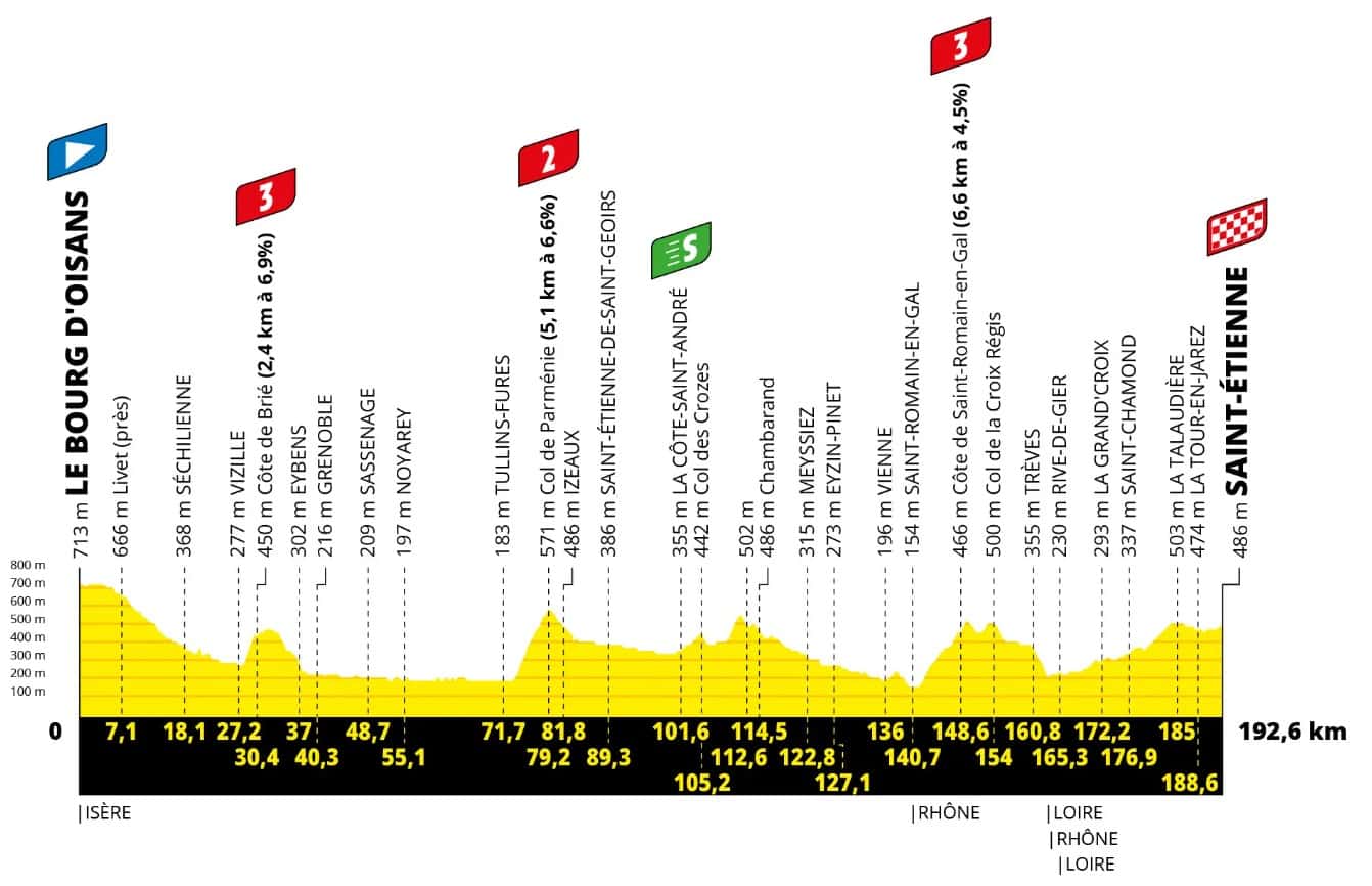Piątkowy etap Tour de France 2022 będzie jednym z najdłuższych. Trasa etapu z Le Bourg d’Oisans do Saint-Étienne liczy 192,6 km. Na 13. etapie będzie kilka podjazdów, ale śmiało w kolarskim żargonie można rzec, że będą łatwymi dla górali i mogą okazać się trudnymi dla sprinterów. Niemniej jednak, spodziewany jest finisz z peletonu bądź udana ucieczka.