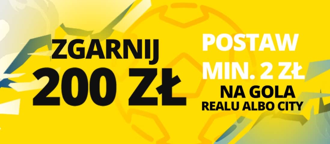 - Postaw za min. 2 złote zakład na gola Realu Madryt lub Manchesteru City.