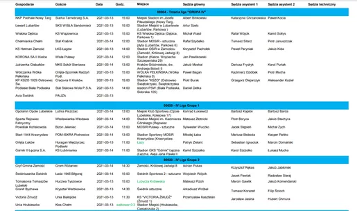 W weekend zostaną rozegrane mecze 24. kolejki grupy IV III ligi oraz 20. kolejki IV ligi lubelskiej. Poniżej prezentujemy obsadę sędziowską wszystkich spotkań.