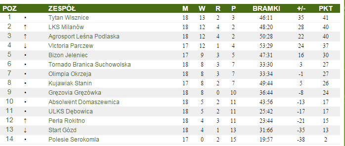 Wyniki 18. kolejki i tabela bialskiej klasy A:
