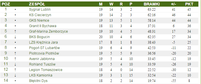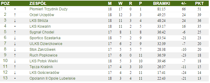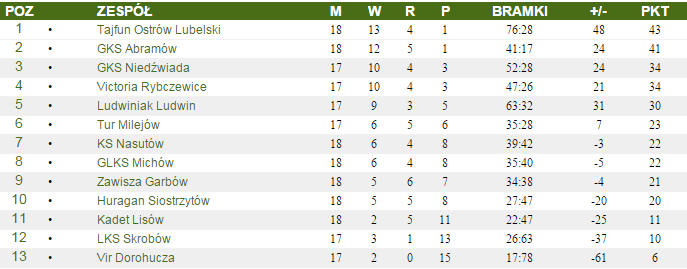 Wyniki 19. kolejki i tabela lubelskiej klasy A, grupy IV: