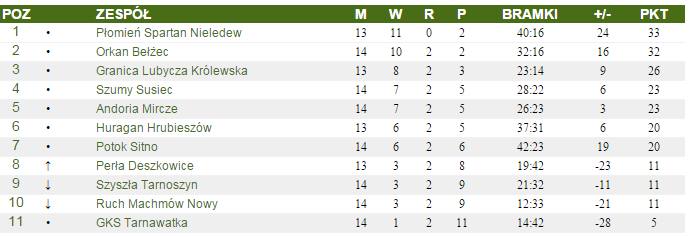 Wyniki 15. kolejki i tabela zamojskiej klasy A, grupy I: