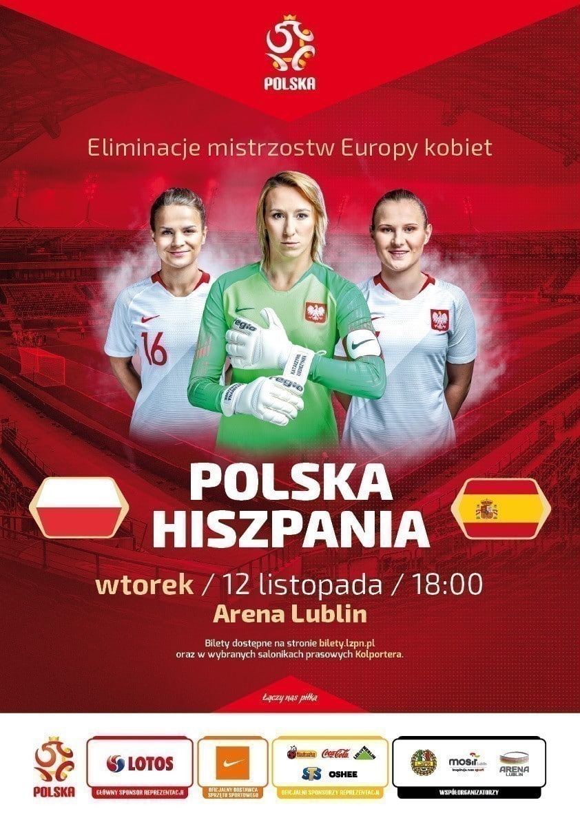 Lubelski Związek Piłki Nożnej informuje, iż 18 października (piątek) o godzinie 12:00 rozpoczęła się sprzedaż biletów na mecz kobiecej reprezentacji Polski z Hiszpanią w ramach eliminacji do EURO 2021. Spotkanie odbędzie się 12 listopada (wtorek) o godzinie 18:00 na Arenie Lublin.