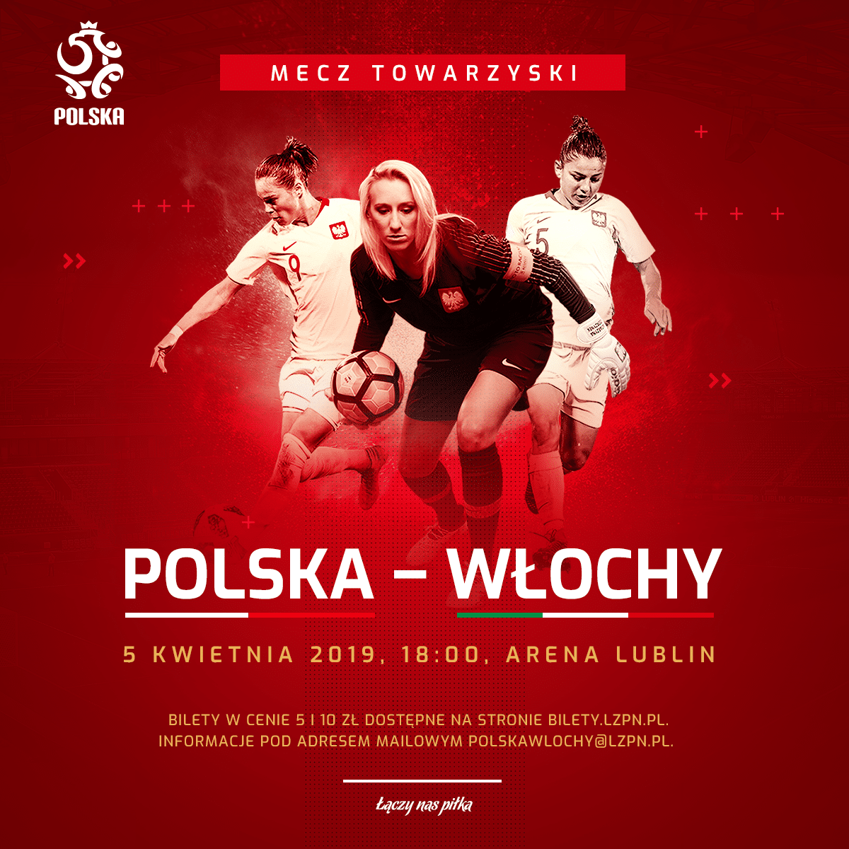 Lubelski Związek Piłki Nożnej przy współpracy z Miastem Lublin ma zaszczyt zaprosić na mecz kobiecej reprezentacji Polski z Włochami. Spotkanie odbędzie się 5 kwietnia br. (piątek) o godzinie 18:00. To pierwsze w historii starcie Polek w stolicy województwa lubelskiego. Sprzedaż biletów na ten mecz rozpoczęła się już dziś!
