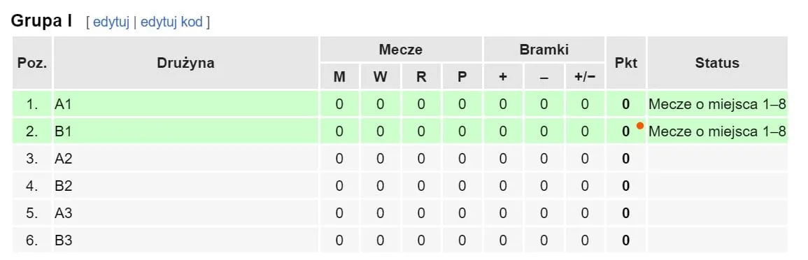 - Grupa A (Goeteborg): Szwecja, Chorwacja, Chiny, Senegal