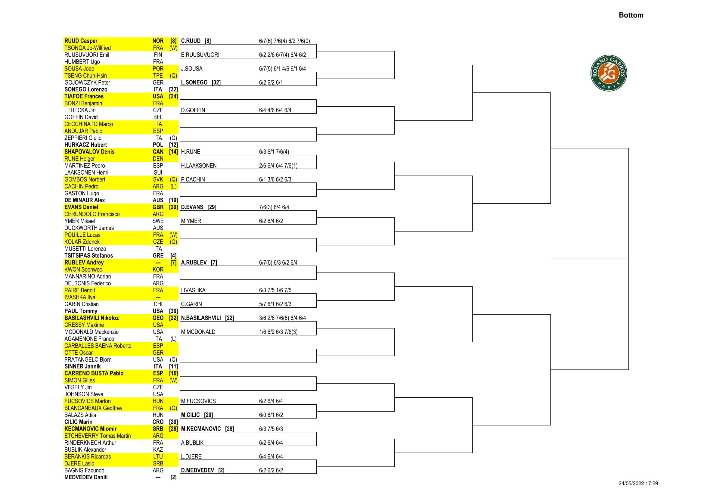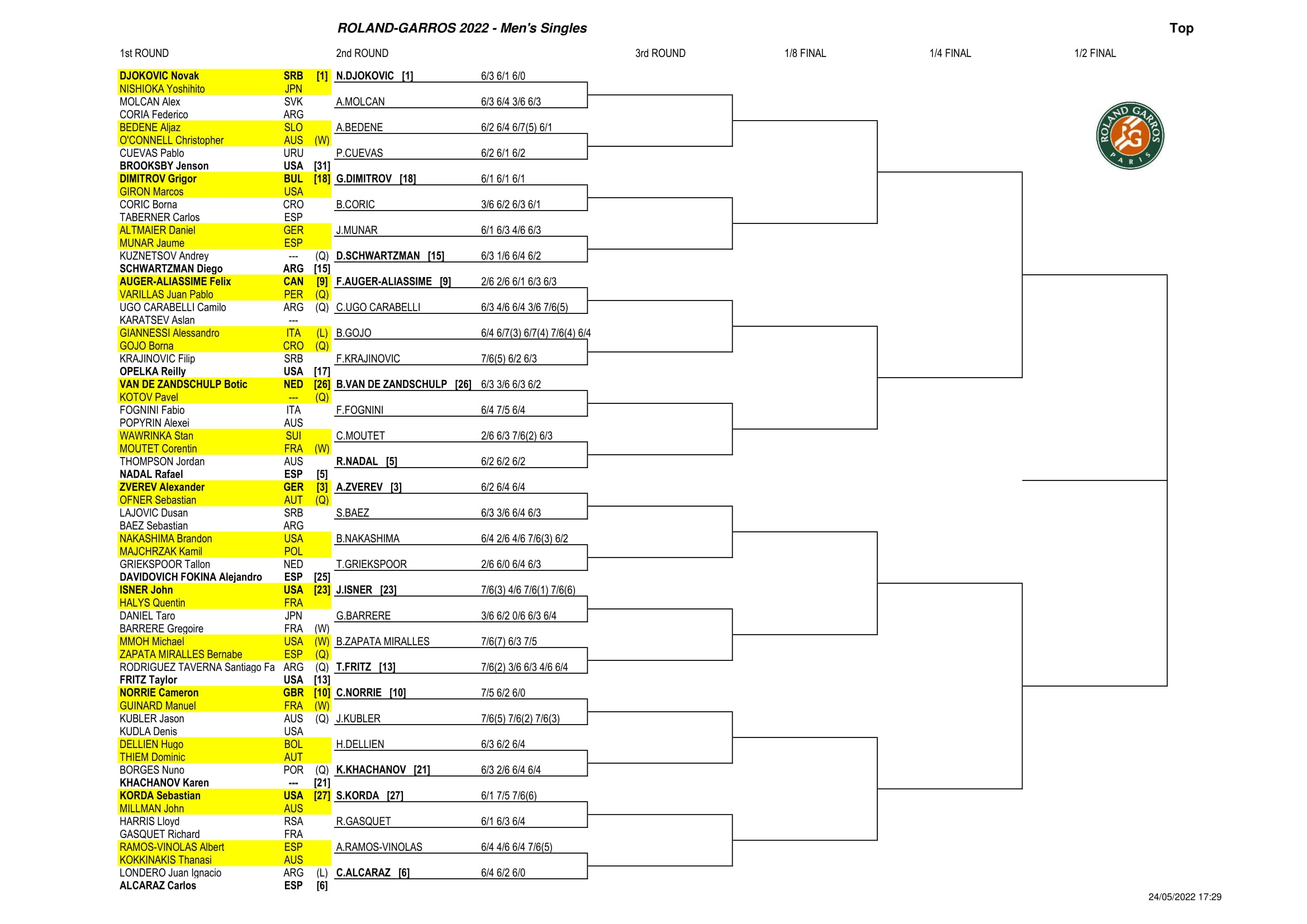 Drabinka Roland Garros 2022 – gra pojedyncza mężczyzn (ATP)