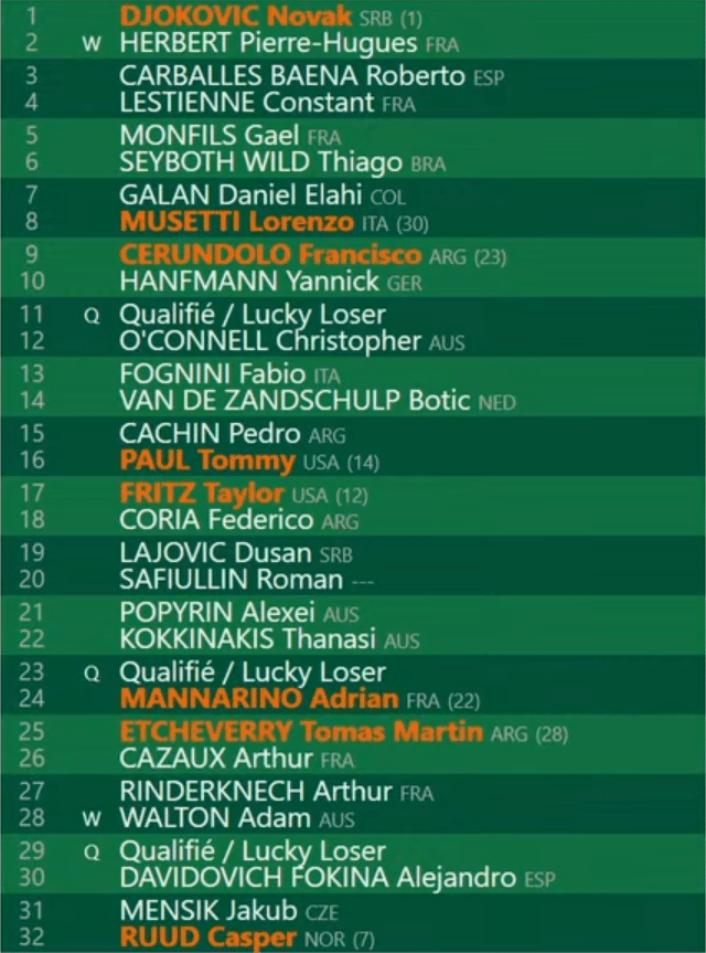 Roland Garros 2024 – drabinka męska