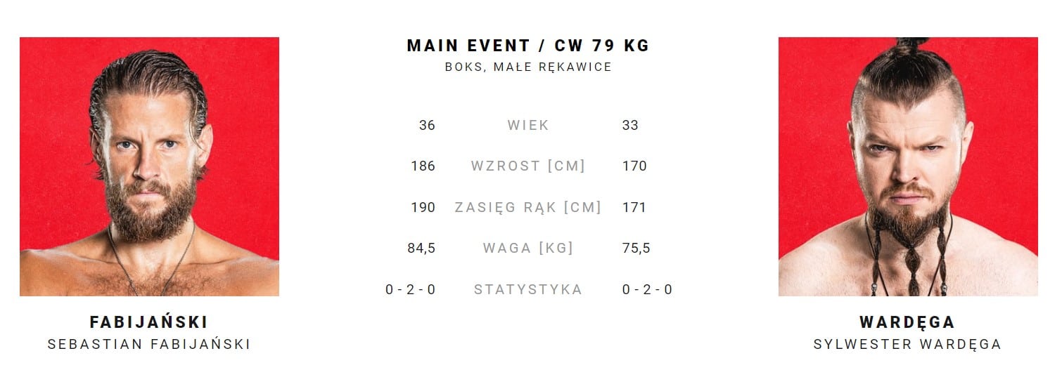 Walką wieczoru miało być początkowo starcie Sebastiana Fabijańskiego z Sylwestrem Wardęga, ale organizatorzy postanowili jeszcze bardziej podgrzać emocje i w klatce zobaczymy pojedynek bokserski 2na2. Do tej dwójki dołączyli bowiem Wojtek Gola (u boku Wardęgi) oraz Tomek Olejnik (u boku Fabijańskiego). Cóż nie będę ukrywał, że to Wojtek Gola wygląda najbardziej solidnie z całej czwórki i to on jest postacią, która może przesądzić o losach walki wieczoru. Twierdzę więc, że para Gola i Wardęga zakończą bój przed czasem, nokautując swoich rywali.
