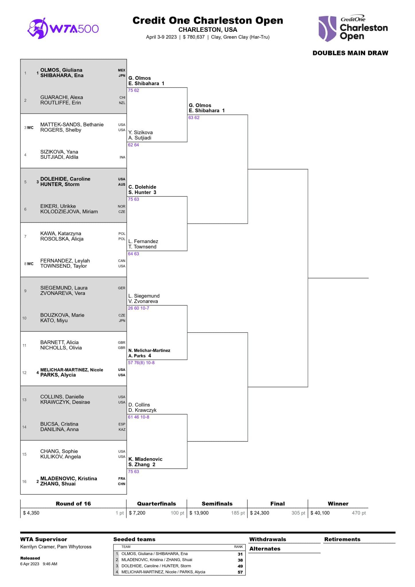 WTA Charleston 2023 nagrody