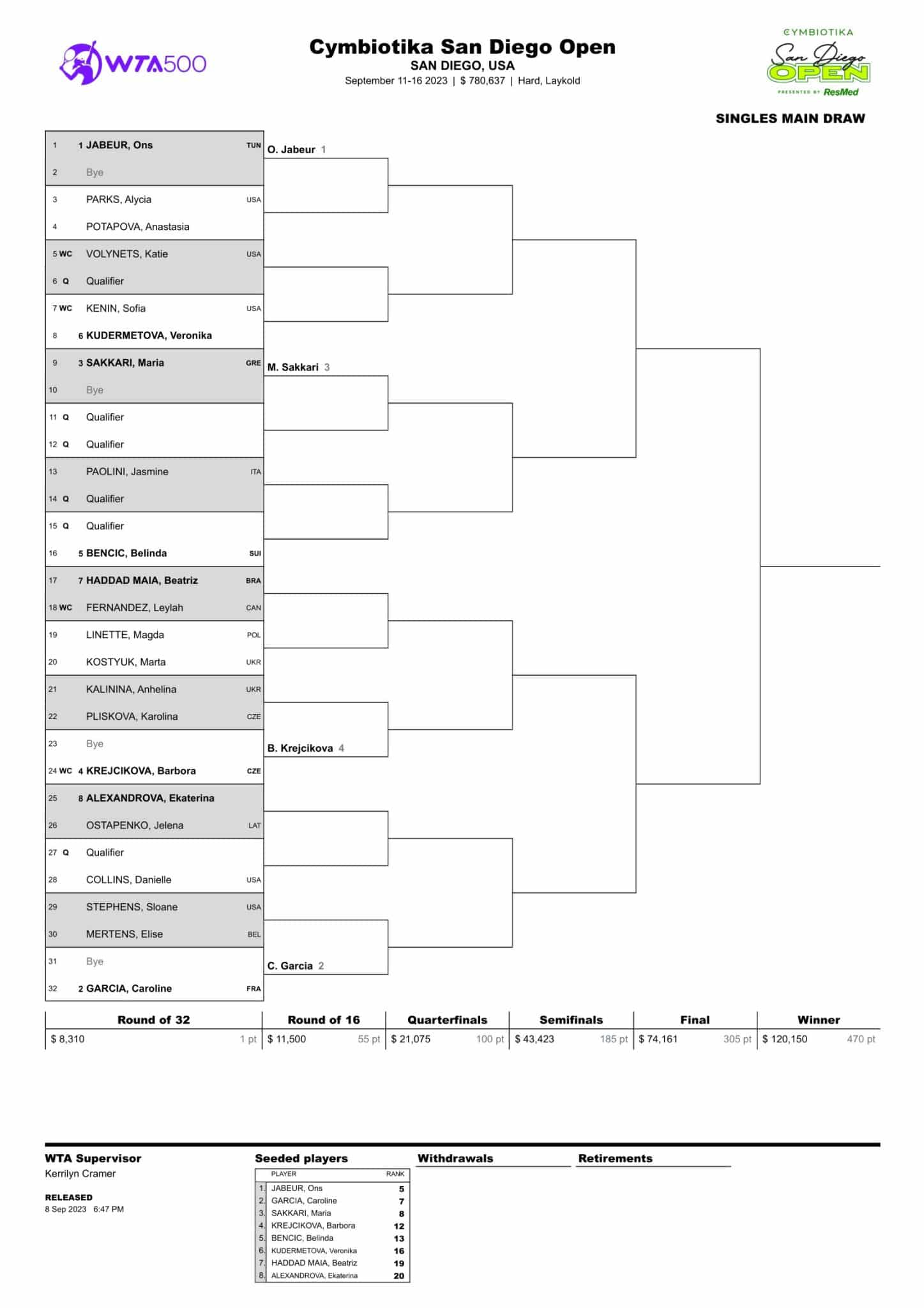 WTA San Diego 2023 nagrody pieniężne