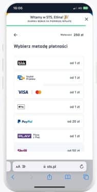 Minimalny depozyt to 1 zł. STS pozwala zasilać konto za pośrednictwem następujących metod wpłaty: