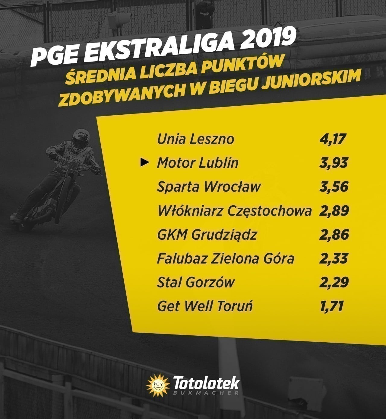 Co różni drużynę Motoru Lublin od reszty czołówki w powyższym zestawieniu? Para młodzieżowa pozostaje bez zmian, natomiast wiek juniorski skończyli już Bartosz Smektała w Unii Leszno, Maksym Drabik w Sparcie Wrocław, Michał Gruchalski we Włókniarzu Częstochowa czy Patryk Rolnicki w GKM Grudziądz.